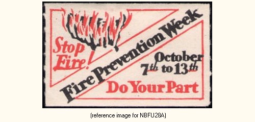 "Fire Prevention Week" -- cinderellas of several series -- National Board of Fire Underwriters (NBFU), "National Fire Protectionn Association (NFPA)" and "National Fire Seals Fund Raising Company (NFSF)". These are comparable to Easter Seals, Christmas Seals and the Smokey Bear stamps - given to solicit donations.